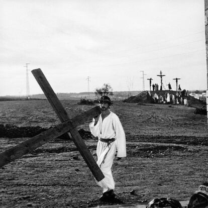 La España tenebrosa del catolicismo, la de los pueblos que en el final del franquismo celebraban añejas ceremonias presididas por la cruz, liturgias que parecían llamadas a desaparecer con la modernización del país, fue objetivo del fotógrafo Koldo Chamorro (Vitoria, 1949-Pamplona, 2009) durante el último cuarto del siglo XX. Los que lo conocieron definen a Chamorro como un hombre con un carácter extrovertido y, a la vez, difícil, a veces áspero. Quizás ello explique la rotunda mirada que proyectó en las 62 fotografías que, con la cruz como hilo conductor, pueden verse en el Museo Lázaro Galdiano, en Madrid, en la exposición El Santo Christo Ibérico, hasta el 20 de septiembre.
