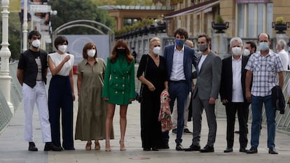 A esas cuatro de la tarde del viernes, el público que entraba al teatro Victoria Eugenia sabía que afrontaba una sesión maratoniana, y presuponían que les merecería la pena. Era una de las sesiones especiales más esperadas del festival de San Sebastián. En un desangelado patio de butacas por culpa de la covid-19, que ha limitado el aforo a un 50%, los no más de 300 espectadores con las entradas numeradas se iban sentando de manera fluida, con estricto control de la mascarilla especial por la larga duración del evento -casi un tercio de los asistentes no se había percatado de esa obligación; por suerte, se vendían al lado del teatro y hubo carreras para su adquisición. Además de espectadores anónimos, algún rostro más conocido: Isabel Coixet, flamante Premio Nacional del Cine; Jesús Eguiguren, expresidente del Partido Socialista de Euskadi o el senador de Geroa Bai Koldo Martínez, cinéfilo habitual del Zinemaldia. Antes de empezar la proyección de los tres primeros episodios, el equipo artístico (hasta nueve actores de reparto asistieron a la sesión de gala) pasó por la alfombra roja con grandes nervios: solo habían visto esa primera parte, les faltaban por descubrir los cinco capítulos restantes.