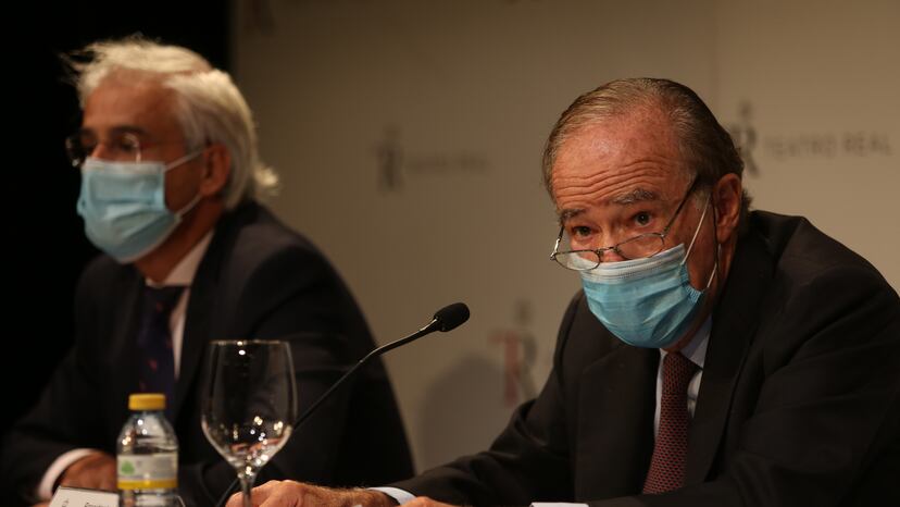 “El Teatro Real ha respetado la normativa de seguridad sanitaria de la Comunidad de Madrid, incluso la ha reforzado”. Con esta contundencia se ha expresado esta mañana el presidente del patronato que rige la institución, Gregorio Marañón y Bertrán de Lis, en una comparecencia para explicar el incidente que obligó a cancelar la función de anoche después de que un sector del público protestara porque no había butacas vacías entre los espectadores que acudían separados. “Lamentamos que hubiera personas que no se sintieran tranquilas, entendemos que una cosa es el reglamento y otra distinta es la sensación subjetiva de seguridad. Por eso vamos a trabajar para que no vuelva a ocurrir”, ha añadido, sin concretar todavía cómo. La próxima representación es el miércoles.