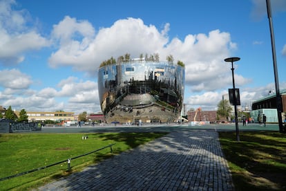 El segundo bien más preciado de los museos es el espacio, y la falta de sitio para exponer los millares de obras guardadas en sus almacenes es la queja más frecuente de los directores. Róterdam, la ciudad que alberga la arquitectura más valiente de los Países Bajos, ha buscado la forma de resolver este problema aplicando ese mismo adjetivo a su último edificio dedicado al arte: se llama Depot y se levanta junto al museo Boijmans van Beuningen. Es el primero de su clase en el mundo, pensado para conservar y mostrar las 151.000 piezas del conjunto de su colección, que abarca desde el arte medieval hasta el contemporáneo. El nuevo espacio espera convertirse además en un punto de encuentro urbano. Y lo intenta desde su misma fachada, con miles de placas de cristal instaladas de manera circular, que producen un cautivador efecto como de espejo. Presentado este jueves, las obras del museo Boijmans estarán instaladas en el Depot el año próximo, permitiendo que el visitante admire un conjunto artístico que no se había ofrecido completo hasta la fecha.