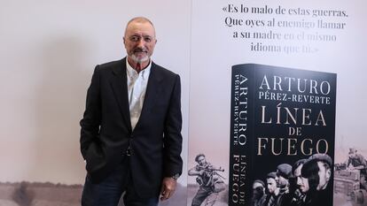 “Soy un novelista. No estoy aquí para limar asperezas. No tengo una misión ideológica”. Tras 35 años de carrera como escritor, Arturo Pérez-Reverte sabe que una novela sobre la Guerra Civil es más que una novela y que, se mire desde la óptica que se mire, la presentación esta mañana de Línea de fuego (Alfaguara, en librerías desde hoy) iba a estar salpimentada de referencias a la política actual. “El discurso que se está haciendo de la guerra es muy simple. Un discurso de buenos y malos. Sé que tanto a la extrema derecha como a la extrema izquierda no les va a gustar. Si a las personas que usan la guerra de manera ideológica esta novela les produce cierto malestar, eso me hace feliz. (...) La herida de la Guerra Civil no estaba abierta, la han reabierto. (...) Cuando no hay base intelectual, ni se hace una política seria, ni se tiene una ideología basada en el conocimiento, hay una tendencia bastarda a usar el blanco y el negro, lo fácil, como argumento político. Como la clase política actual no tiene ese discurso ideológico solvente recurren a la Guerra Civil, que para esto es perfecta. Las nuevas generaciones de políticos carecen de ese plano intelectual y recurren a argumentos maniqueos para suplir sus carencias. Como la memoria ha desaparecido en los planes de estudio, el receptor es un joven sin capacidad para razonar esos discursos falsos emitidos por ignorantes”, comentó esta mañana en un céntrico hotel de Madrid.