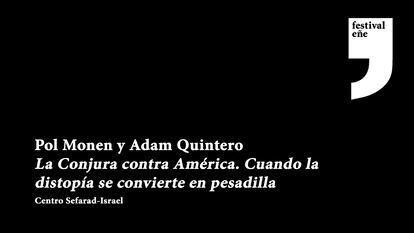 Los actores Pol Monen y Adam Quintero conversan sobre la historia del libro y serie La Conjura contra América, de Philip Roth, y profundizarán en otras obras llevadas a la pequeña y la gran pantalla, así como en la filmografía que puede enmarcarse bajo la definición de lo distópico. Ambos tratarán de analizar qué sensaciones provocan estos argumentos literarios y cinematográficos en el espectador y la complejidad que entraña plasmar estos mundo imaginarios en una producción audiovisual. La conversación estará moderada por Alfonso Caro, director de El Palomitrón y Fila EFE.