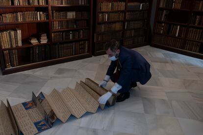 El fondo del San Francisco de Paula tiene unos 60.000 ejemplares, repartidos entre el área de la biblioteca y otro depósito situado fuera del centro. “Tenemos otros ejemplares curiosos, como algunas obras de Lope de Vega, enciclopedias… El impreso más antiguo que conservamos es de 1472. Pero también hay manuscritos anteriores, como uno de los Privilegios rodados de Alfonso X fechado en 1256. La mayoría de los volúmenes están en español, inglés, francés y latín; aunque hay rarezas en otras lenguas como un manuscrito de Birmania [la actual Myanmar]”, explica el director. Y añade: “Fondo antiguo de este calibre no creo que tenga ninguna biblioteca escolar de España”. A esta colección aún le falta realizar un proceso de catalogación para que sea accesible a los investigadores.