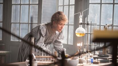 La británica Rosamund Pike interpreta a una Curie cuya rebeldía se traduce en un gesto tan tenso como intenso. Demasiado nerviosa y soberbia, es una mujer que no acepta el ninguneo de los hombres ni en la academia ni en su casa. Obsesionada con sus investigaciones, la película también la muestra un poquito obsesiva compulsiva cuando le da por recoger la casa. Un personaje de laboratorio al que no le basta aullar desesperada por la muerte de su marido para hacernos ver que es humana.