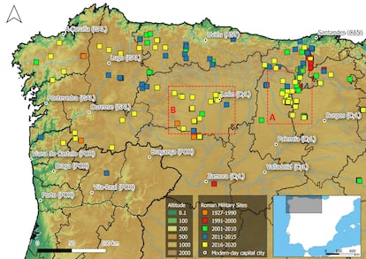 Un total de 66 campamentos desde los que las legiones romanas partían para derrotar a las tribus astures, aplacar las revueltas cántabras, asegurar las calzadas, proteger zonas mineras o fortificarse a la espera de refuerzos han sido localizados en los últimos meses mediante nuevas técnicas de prospección en el norte de Castilla y León, según publica esta semana la revista Geosciences. El hecho, dice el informe, supone “un importante avance en la comprensión de las dinámicas de la conquista romana e incrementa en un tercio los recintos militares conocidos para la zona en las últimas décadas”.