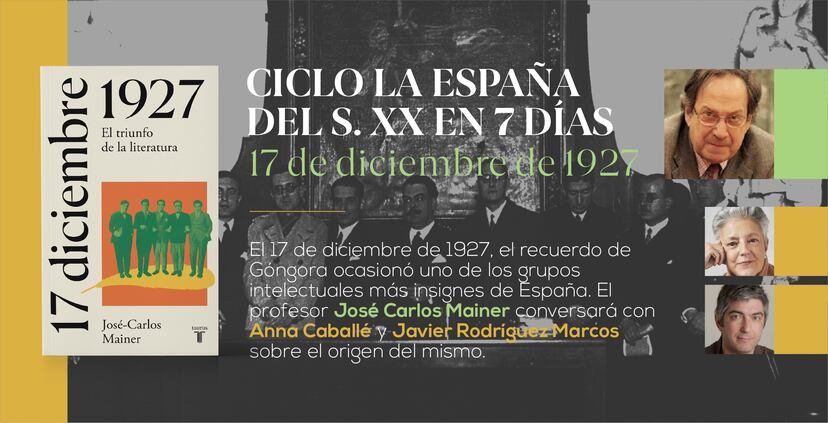 El 17 de diciembre de 1927, un grupo de jóvenes poetas paseaba sus versos y sus resacas por Sevilla, bajo la excusa del tercer centenario de la muerte de Góngora. Formaban parte no tanto de una generación como de una maniobra de afirmación de grupo, pero ahí nace El 27, y cristaliza la llamada Edad de Plata de la cultura española. El profesor José-Carlos Mainer, uno de los mayores expertos sobre esa época, conversa, este miércoles a las seis y media de la tarde, con la escritora Anna Caballé sobre este extraordinario grupo, en un encuentro moderado por el periodista de EL PAÍS Javier Rodríguez Marcos.