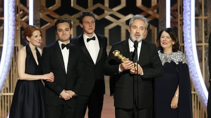 Así se calienta un estreno. Una película que no se puede ver hasta el próximo viernes, 1917, ganó este domingo el premio al mejor drama en los Globos de Oro de 2020. El drama bélico de Sam Mendes, inspirado por la experiencia de su abuelo en la Primera Guerra Mundial, se llevó el galardón más codiciado de la Asociación de la Prensa Extranjera de Hollywood (HFPA) en un año en el que el elenco nominado era de muy alto nivel. Érase una vez en... Hollywood, la carta de amor de Quentin Tarantino a un Los Ángeles idealizado en el verano de 1969, fue seguramente la otra triunfadora de la noche. Ganó el premio a la mejor película en la categoría de comedia y musical, una clasificación discutible pero que sirvió su propósito. Además, se llevó premios al guion y a Brad Pitt como secundario, y dejó claro que de nuevo a la industria le encanta verse reflejada en el cine, especialmente así de bien.