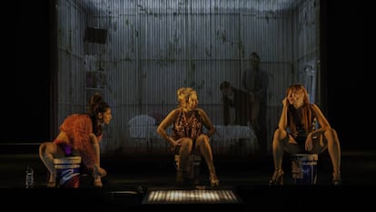 Madrid, fin de semana. Teatros con entrega absoluta y merecidísimos llenazos. Tres regalos, por ejemplo, en la calle del Príncipe y la plaza de Santa Ana. Reírse con Calderón como si fuera Goldoni y con ritmos italianos: La señora y la criada, dirigida por Del Arco en la Comedia. Que se te suba el corazón a la garganta con Atentado, de Félix Estaire (dirigida por Estaire y Xus de la Cruz), en la sala Xirgu. Y la sala grande del Español, llena hasta lo alto con Prostitución, a cargo de Andrés Lima y su equipo. Da gusto ver esos silencios conmovidos del público, y las descargas de humor feroz para liberarse un poco del peso del día a día de las prostitutas. En una obra como esta no puedes trabajar sin darlo todo. Y sus enormes actrices —Carmen Machi, Nathalie Poza, Carolina Yuste— parecen dejarse la piel a tiras. Si no existiera el término “cabaret documental” habría que inventarlo para esta función, donde conviven el escalofrío, la furia, la risa y la tristeza. Lima está más brechtiano que nunca, y eso para mí quiere decir auténtico: sea fábula o sea vida cotidiana, ha de llegarte y mostrar gente de verdad. Sus cofrades son Albert Boronat y Juan Cavestany, mezclando textos de Virginie Despentes y Amelia Tiganus con testimonios reales (Ana María, Isabella, Lucía, Alexia, Alicia) que los tres dramaturgos y las tres actrices han recabado durante más de un año.