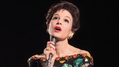 El camino al Oscar a la mejor actriz de esta temporada parece estar pavimentado de baldosas amarillas. O, mejor dicho, doradas, el color de los premios que le están lloviendo a Renée Zellweger (Katy, Texas, 50 años) por su encarnación de Judy Garland en la película que ha supuesto su regreso triunfal a Hollywood después de un retiro autoimpuesto de varios años. En Judy, que se estrena en España mañana viernes, la intérprete se transforma en una leyenda hundida, típico papel para sacar rédito en la temporada de premios y, por él, Zellweger es favorita al Oscar (sería el segundo de su carrera) y al Bafta tras haber logrado ya el Globo de Oro y el galardón del Sindicato de Actores (SAG). Resulta paradójico que mientras Judy murió por una sobredosis accidental de barbitúricos seis meses después de los acontecimientos que narra este biopic, la texana esté viviendo lo que los medios en inglés han bautizado como The Renéessance (Renéecimiento).