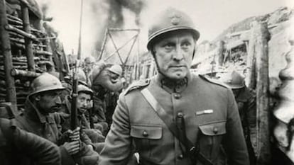 Es de esperar que el diálogo sea de Jim Thompson, que firmó el guion de Senderos de gloria junto a Stanley Kubrick y Calder Wilingham. Pero quien pronuncia la frase en pantalla es Kirk Douglas en su papel como el coronel Dax; el hombre que representa todo lo bueno que hay en un mundo en el que, al igual que ocurre en Espartaco, está todo mal. Y quizá sea el peor villano, el general Mireau, el que mejor explica esa maldad. Lo hace al principio de la película, cuando su superior, el general Broulard, le ordena tomar una colina imposible con los hombres de los que dispone; se trata, básicamente, de una misión suicida. Y cuando ese superior le deja caer la posibilidad de un ascenso, Mireau responde teatralmente con la verdad: “No pensará que puedo sacrificar hombres en función de mis ambiciones personales”, antes de aceptar el envite. Dice exactamente todo lo que está bien, y al decirlo y estar de acuerdo con ello, ya está listo para traicionarse. La cámara siempre los encontrará a los dos en palacios, fiestas y salones suntuosos; la única vez que Mireau baja al barro –a ver el asalto frustrado a la colina– acabará pidiendo a gritos bombardear a sus propios soldados y pidiendo, finalmente, la ejecución de 100 de ellos.