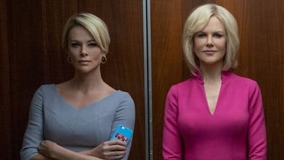 “Lo chocante es que haya resistido tantos años y ahora se venga abajo tan de repente”, dijo el periodista Gabriel Sherman tras la dimisión pactada de Roger Ailes como ideólogo ejecutivo de la cadena Fox News, a causa de las acusaciones de varias presentadoras por acoso sexual. Sherman, que comenzó con un reportaje de investigación para la revista New York y acabó escribiendo un libro, The Loudest Voice in the Room: How the Brilliant, Bombastic Roger Ailes Built Fox News and Divided the Country, resume a la perfección con la frase inicial la deriva de los nuevos tiempos. Se ha acabado la bula. La revolución feminista ha llegado para quedarse y buena prueba de ello son los dos rápidos productos audiovisuales sobre las maquinaciones de Ailes: La voz más alta, excelente serie de televisión de Showtime (que en España emite Movistar), basada en el libro de Sherman, y la notable película El escándalo, dirigida por Jay Roach, que hoy se estrena en cines, y que cambia el foco desde el ejecutivo acosador hasta las mujeres acorraladas, interpretadas por las formidables Charlize Theron, Nicole Kidman y Margot Robbie, aquí protagonistas de un drama social de ambiciones, perversiones y manipulaciones.