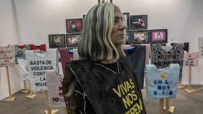 La artista peruana Ana de Orbegoso se pasea orgullosa por los pasillo de Zona Maco, la feria de arte contemporáneo más grade de Latinoamérica que reúne a más de 210 expositores de 26 países, vistiendo un chaleco con la leyenda: “Vivas nos queremos”. Es la apuesta de este festival por reivindicar la lucha de las mujeres contra la violencia machista, que en el caso de México arroja cifras de horror: diez mujeres asesinadas al día.