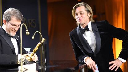 En una esquina, separado del resto de invitados por una cinta y un equipo de grandullones de seguridad, Brad Pitt celebra su primera estatuilla como actor agitando la melena con unos amigos. Tom Hanks, uno de los perdedores, parece más concentrado en la ensalada de berenjena con arroz negro. En otro pasillo y aún con el Oscar en la mano, Joaquin Phoenix abraza a Adam Driver, otro de los derrotados. Phoenix inclina tanto la cabeza y balbucea algo de un modo tan afectado que casi parece que le estuviera explicando a su compañero los trucos de su personaje en Joker.