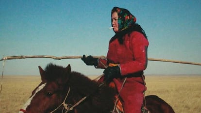 El huevo del dinosaurio —Öndög (huevo) en su título original— retoma el paisaje y, de alguna manera, el personaje femenino de La boda de Tuya, película de Wang Quan’n que en 2007 logró el Oso de Oro de la Berlinale. El cineasta chino regresa al territorio infinito de la estepa de Mongolia para hablarnos otra vez de una mujer admirable. Una pastora que cruza el desierto a lomos de su camello con un cigarro en la boca y un rifle y que vive sola en su pequeña yurta. Apodada Dinosaurio, la rutina de la mujer queda interrumpida cuando otra mujer aparece muerta en medio de la nada y la policía le pide que alimente y defienda de los lobos al inexperto agente de 18 años encargado de velar el cadáver.