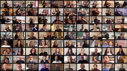 ¿Qué tienen en común Pedro Sánchez presidiendo un Consejo de Ministros convertido en La tribu de los Brady, Meryl Streep rindiendo homenaje a Stephen Sondheim en albornoz y los integrantes de una institución centenaria como el Orfeón Donostiarra, Mick Jagger cantando eso de que uno no siempre consigue lo que quiere y la rompedora programación online del Teatro de La Abadía? Todos han protagonizado imágenes memorables durante estas siete semanas de confinamiento, que tal vez serán recordadas por su formato inhabitual: la pantalla partida. Buena parte de nuestras interacciones han tenido lugar gracias a una solución formal emparentada con esa vieja herramienta del montaje fílmico, casi tan antigua como el propio cine, que volvió a irrumpir en la cultura visual cuando el coronavirus apareció en nuestras vidas. A medida que plataformas como Zoom ganaban adeptos —en abril superó los 300 millones de usuarios, cuando a finales de 2019 no eran más de 10 millones en todo el mundo—, la split screen se ha convertido en la forma casi normativa de comunicarnos, pero también de crear y consumir cultura.