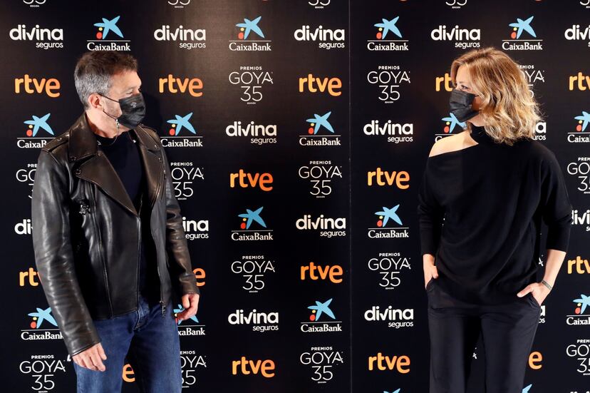 Su compañera de labores, María Casado, directora de la productora televisiva del teatro Soho, explicó algo más el evento: “Hemos trabajado todos los formatos según cambiaban los acontecimientos. Finalmente será una gala corta, un espectáculo televisivo, con la idea de que también rindamos homenaje a la gente que hace cine detrás de las cámaras. Habrá actuaciones, porque queremos que la música suene en directo. La Orquesta Sinfónica Pop del teatro Soho participará en la gala, junto con otros artistas”. Y de ellos solo anunció la presencia de Aitana y Vanesa Martín. Banderas entiende que son unos Goya muy especiales: “No empujaré yo para que sea una gala emocionante, porque de por sí ya lo será. Se han ido muchos compañeros —la mayor parte nada famosos— antes de tiempo. La industria del cine es más que las alfombras rojas, y este año queremos poner eso de relieve. La ceremonia mostrará quiénes somos de verdad en el cine; hoy, todos los trabajadores del cine son imprescindibles, y la industria da de comer a muchas familias”. Aun así, subrayaba: “Cada día cambian las cosas, y luchamos por colarnos por las rendijas que deja la realidad. Esperamos que los Goya sirvan como el comienzo de una recuperación anímica, porque, es obvio, estamos todos agotados”.