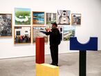 Estos dos momentos en la obra de Elbaz —el compromiso político y la ruptura postmoderna con el pasado— ilustran la muestra Trilogía marroquí, en el Museo Reina Sofía de Madrid: más de 250 piezas y documentos de archivo producidos desde la independencia, en 1956, hasta nuestros días. La exposición se divide en tres periodos históricos (1956-1969, 1970-1999 y 2000-2020). “Nunca antes había tenido lugar una genealogía del arte moderno de Marruecos, ni tan siquiera en su propio país”, asegura Manuel Borja-Villel, director del centro, en una de las 22 salas del Edificio Sabatini que acogen la propuesta. “Tratamos de visibilizar procesos y experiencias ligadas a la periferia historiográfica. Si antes nos centramos en América Latina, este es el momento de unos vecinos del sur sobre los que sabemos poco. Sin embargo, ellos conocen bien a los creadores occidentales”, prosigue.