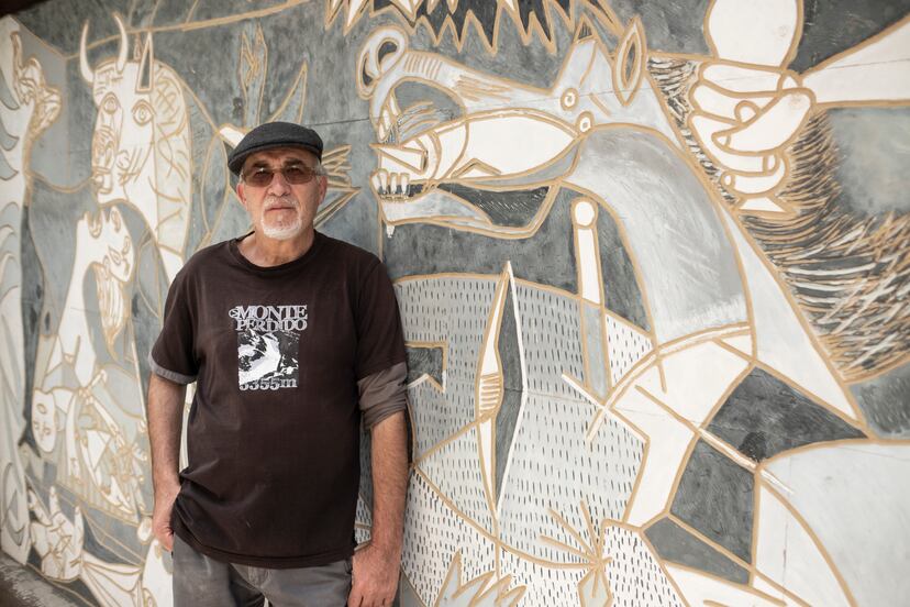 Miguel Martín (Toledo, 68 años) ha trabajado toda su vida como tapicero, pero su sueño siempre fue ser artista. “Si me hubieran dejado estudiar Bellas Artes de pequeño, hoy sería pintor y escultor”, asegura. Para quitarse esa espina, ahora que está jubilado ha montado un taller en su casa donde lo mismo da rienda suelta a su imaginación que construye réplicas de sus obras favoritas, lo que ha convertido su jardín en un peculiar museo en el que llaman la atención dos grandes piezas: una pirámide egipcia de cuatro metros de alto y una reproducción del Guernica de Picasso cincelada en un murete.