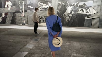 El escenario sigue siendo el mismo, pero también parece otro distinto: esos pabellones de Ifema, en la periferia madrileña, que se convirtieron en efímero hospital en el pico de infecciones, un episodio traumático y todavía mal digerido que tal vez haga imposible la euforia. Todo se ha vuelto más reposado y más previsible, con menos golpes de efecto que otras veces, sin obras escandalosas ni gestos gratuitos y excéntricos. “Es cierto que veo una contención, una serenidad y una seriedad propia de este momento”, admitía al comienzo del día la directora de la feria, Maribel López. “Es menos una celebración que otras veces y hay una forma más atenta de ver el arte. Es una edición diferente, pero importa más lo que no ha cambiado: mantenemos la calidad, la internacionalidad y el apoyo de los coleccionistas”, sostiene López, que asegura que 250 compradores potenciales de primer nivel, un centenar menos de lo habitual, pasarán esta semana por Madrid.