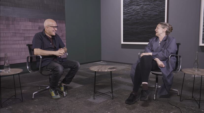 Juan Uslé, artista invitado al espacio expositivo de EL PAÍS en ARCO de este año, reflexiona en este vídeo sobre la pandemia con Estrella de Diego, miembro de la Real Academia de Bellas Artes de San Fernando, en una charla de el espacio del periódico en la feria de arte contemporáneo. Su obra en ARCO, un encuentro entre pintura y fotografía, es una poética reflexión sobre su propio confinamiento. El mar, protagonista en la exposición de Uslé, refleja el confinamiento del artista, como “esa idea de amplitud, horizonte y libertad” que tanto anhelaba.