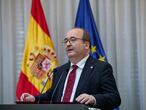 Miquel Iceta ha aceptado esta mañana la cartera de Cultura y Deporte de manos de José Manuel Rodríguez Uribes con un saludo en todas las lenguas oficiales que ha sonado a declaración de principios. “El carácter plurilingüe de la cultura española obliga al federalismo cultural y me apresto a hacer todo lo posible desde el cargo que voy a ocupar”, ha dicho el exministro de Política Territorial y Función Pública. Su discurso, lleno de humor y de referencias a los predecesores “que ya no están” (“la cultura es también memoria y no puedo dejar de acordarme sin emocionarme de Carmen Alborch y Jordi Solé Tura”), ha incluido también un reconocimiento al potencial del español en el mundo. “Tenemos capacidad para convertirnos en una superpotencia cultural y deportiva”, ha advertido. “Hay que hablar de España”, ha defendido, para añadir que a él no le “cuesta”, pues intenta “llevar siempre el escudo de España”, porque no ha visto “nunca cosa más integradora”.
