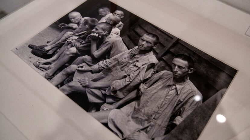El director habla al lado de un dibujo de Josep Bartolí de los campos de concentración. Está hecho en papel, no había dinero para mejores materiales, y ofrece una mirada dura sobre el dolor extremo. Al lado hay una foto de Lee Miller donde los que miran a los muertos lo hacen casi desde la obscenidad de la frialdad. Hay también en esta zona un cuadro de la artista austriaca Ceija Stojka. Parece el cuadro de una niña, hasta cierto punto lo es. Es el recuerdo de la infancia de una mujer gitana que a los 60 años empezó a dibujar el horror de su experiencia en tres campos de concentración, de los que se salvó gracias a que su madre la escondió entre cadáveres. Borró su herencia gitana, su pasado, hasta que no pudo más. “Vomita toda esa historia que había tenido reprimida cuando uno de sus hijos muere de sobredosis y considera que no lo pudo salvar como sí había hecho su madre con ella”, ha contado el director.