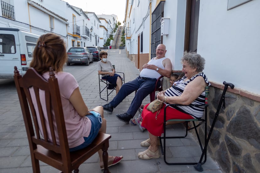 La calle Sol es una empinada cuesta que cruza el pueblo y que para salvar el desnivel necesita 124 escalones. Los tiene contados José Ibáñez, vecino de 81 años, para cuantificar cuántos vecinos cabían hace unos 30 años: “Cada tarde, se llenaban enteras de familias charlando, jugando al bingo, cenando… Lo pasábamos estupendamente”. Ni él ni su mujer, Francisca Sánchez, ni su vecina Catalina Sánchez han faltado a la cita habitual de cada atardecer veraniego. “Poniéndose el sol, ya estamos aquí. Aguantamos hasta la cena, que entramos a casa, y luego volvemos a salir hasta la medianoche”, relata Ibáñez cómodamente repanchingado en una silla de plástico. Aunque el octogenario sabe que es una costumbre en extinción. La tarde del pasado miércoles solo ellos y cuatro jóvenes mantenían un rito tan ancestral como de origen incierto.