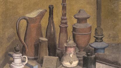 “La pintura como un medio de resistencia a desaparecer”, apunta la comisaria para describir el trabajo del artista y aclarar que, aunque Morandi se mantuvo al margen de las contiendas mundiales, “no fue ajeno a ellas”. Reconoce que no hay atisbo de estas en su obra, pero recuerda que fue ha llamado a filas en la I Guerra Mundial, de la que pudo regresar por enfermedad. Y que en la Italia fascista pisó la cárcel por sus amistades literarias contrarias al régimen autoritario. “Se le ha acusado de ser demasiado clásico, anticlásico, excesivamente romántico, riguroso. Hacía poco ruido, pero siempre fue firme con sus ideas. Lo que al cabo de los años le dio su lugar gracias a su coherencia”, zanja la experta.