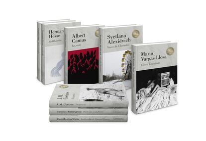 EL PAÍS ha confeccionado una biblioteca con autores que han merecido el máximo galardón del mundo literario moderno. La selección se compone de 25 obras en edición de lujo, encuadernados en tapa dura, de escritores como José Saramago, Gabriel García Márquez, Ernest Hemingway, Doris Lessing, Thomas Mann o William Faulkner.