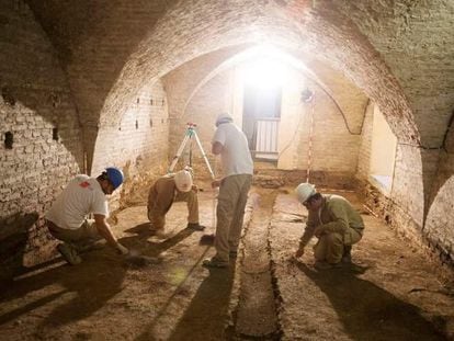 “A partir del siglo XI, con el auge constructivo de Al-Mutamid, los sillares de la muralla se reutilizan en otras construcciones y la orilla del río, cuyo cauce se había desplazado a la izquierda, es ocupada por una necrópolis musulmana”, explica Jiménez. La existencia del cementerio se conocía desde 2006, cuando aparecieron unas 80 inhumaciones durante la construcción del Metrocentro.