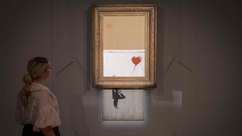 Banksy pintó por primera vez la imagen de la chica con el globo rojo en una pared en la calle de Great Eastern, en Londres, en 2006. La versión subastada en 2018 fue trazada con aerosol y acrílico sobre lienzo. Después de su destrucción, ya renombrada como El amor está en la papelera, fue exhibida públicamente en museos de Londres, Hong Kong, Taipéi y Nueva York. Banksy, que nunca ha confirmado su identidad, es uno de los 20 artistas más cotizados del mundo. Su segunda obra más valiosa es El que cambia el juego, una pintura creada para recaudar fondos para el sistema de salud inglés tras la pandemia, que fue vendida el pasado mes de marzo por 19 millones de euros. El tercer puesto lo ocupa el Parlamento transferido, un lienzo con la imagen de la inglesa Cámara de los Comunes llena de chimpancés, que se vendió por cerca de 11 millones en 2019.