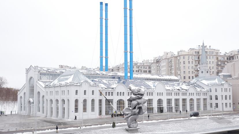 Vestida por un manto de nieve y abrazada por el río Moscova, la antigua central eléctrica GES-2 se dibuja ante el visitante que se aproxima a sus puertas como una enorme catedral blanca; un templo consagrado al arte moderno donde sus enormes vidrieras adivinan un espacio lleno de luz, y sus chimeneas y su antigua torre del reloj se elevan hacia el cielo de Moscú en una semblanza gótica.