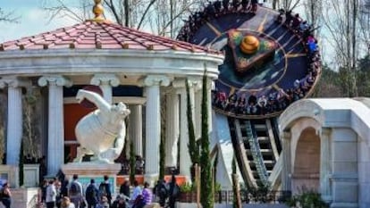 Otra posibilidad a considerar es dejarte caer en una marmita. El parque está dominado por una montaña en cuya cima atalaya las instalaciones una figura de Astérix. Existe una zona que no tiene que ver con los dibujos y que resigue la historia de Francia a partir de la Edad Media con decorados y espectáculos de circo y patinaje (incluye una representación en la que se observa literalmente cómo se hunde un paquebote moderno). Los propios visitantes pueden ser una atracción más como el conocido poeta catalán que paseaba estos días por el parque ataviado con uno de los gorros en forma de jabalí que se venden en las tiendas de recuerdos y recitando insistentemente versos de Josep Carner, lo que le hacía firme candidato a acabar como el bardo Asurancetúrix.