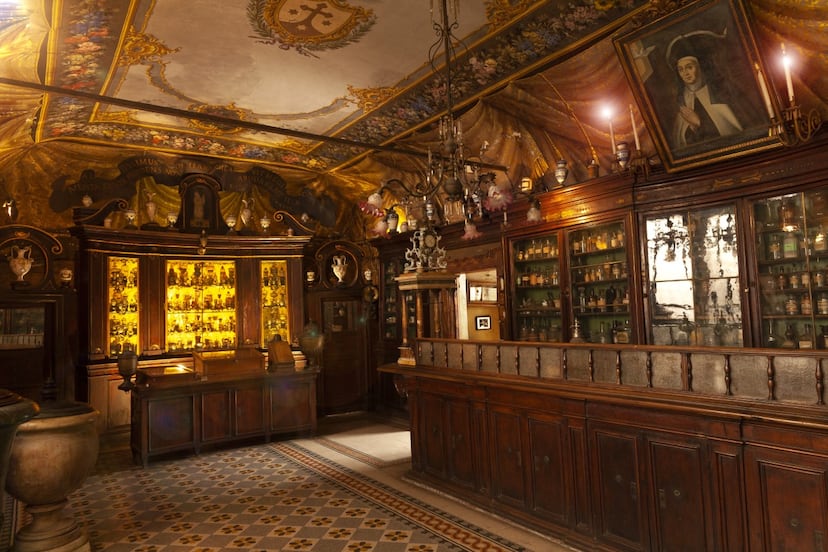 La antigua especiería de Santa María de la Scala puso en marcha sus laboratorios en el siglo XVII para uso interno de los frailes y un siglo después abrió sus puertas al gran público. En el XIX ganó el apelativo de “farmacia de los Papas”, ya que entre sus muros se elaboraban los remedios que curaban las enfermedades de los pontífices. Cerró definitivamente en 1954, con el auge de las farmacias laicas.