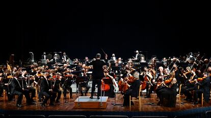 El director ruso Dima Slobodeniouk toca el himno de Ucrania en Cuenca junto a la Sinfónica de Galicia