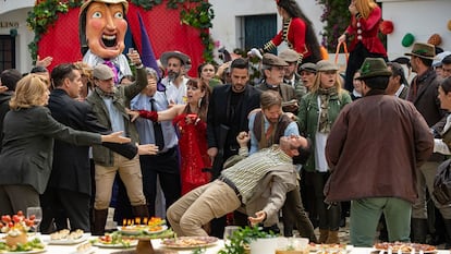 Los objetivos, explícitos incluso en uno de los diálogos, con la aparición del inequívoco y personalísimo término “austrohúngaro” como homenaje, parecen los de componer La escopeta nacional de 2022, fusionada con el espíritu de sacar el dinero a los americanos de ¡Bienvenido, mister Marshall!, aunque esta vez con la vista puesta no en ellos sino en los que ahora parecen manejar el planeta y la pasta: los chinos. Ahí están la finca de los marqueses en Toledo, la cacería con la presencia de un ministro socialista, de representantes de los diferentes partidos, de la Iglesia, del dinero, de las corruptelas, del desbarre, de los caraduras, de la lujuria, de la Guardia Civil y hasta de la España del lenguaje inclusivo, la eterna división de la izquierda y la cada vez menos disimulada actitud de los nostálgicos del régimen franquista. Por querer ser berlanguiano, Sánchez incluso basa su puesta en escena en la utilización de los planos secuencia repletos de gente, con todos hablando al mismo tiempo. Con lo difícil que es eso.