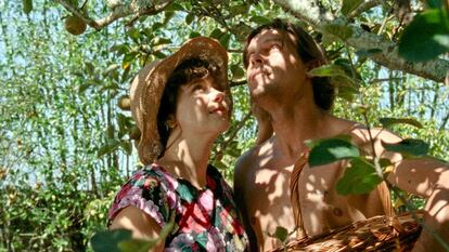 La pandemia atropelló a Gomes, aquí con la codirección de Maureen Fazendeiro, pero el director portugués acabó haciéndole frente con una miniatura de cámara que los espectadores verán con placidez si están dispuestos a ello, y con enfado y prisas si no son partícipes de su singularidad. Gomes nunca fue fácil ni para todos los gustos. Otsoga, leído del revés, es agosto, y así ha articulado la pareja creativa su trabajo: desde delante hacia atrás, a la manera de títulos como Irreversible, de Gaspar Noé, y de fundamentales piezas teatrales como Traición, de Harold Pinter. La primera secuencia, correspondiente al día 22 del rodaje de la película que hay dentro de la propia película, es la última en la cronología natural del tiempo. La segunda es la penúltima, la del día 21, y así sucesivamente hasta acabar en un principio mucho más nervioso que su radiante final, en unos primeros días de rodaje acogotados por los protocolos sanitarios.