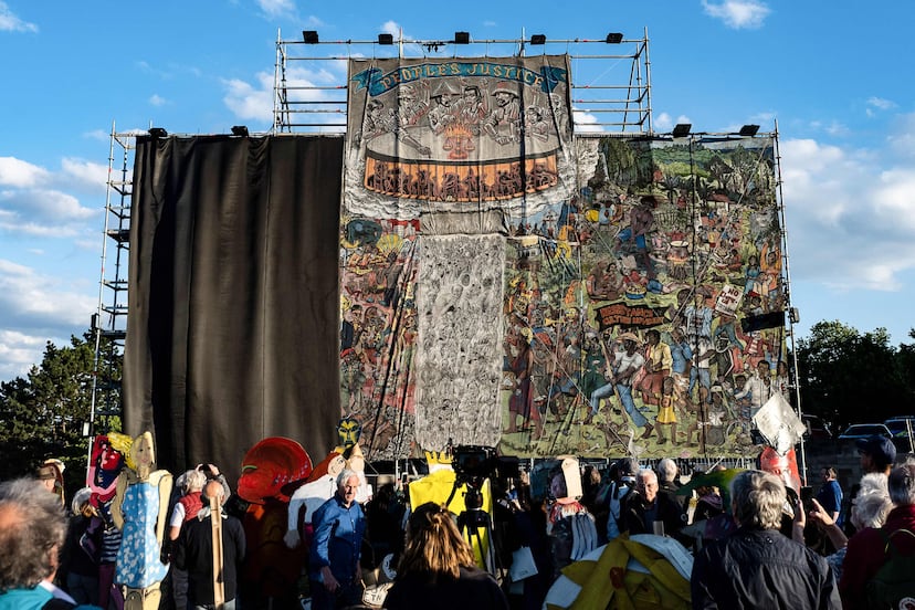 Aunque el debate sobre el antisemitismo había empezado hace semanas con acusaciones a los comisarios, el colectivo indonesio Ruangrupa, de invitar a organizaciones que apoyan el boicot cultural a Israel, la polémica estalló durante el fin de semana al verse por primera vez el mural. Las fotos de las figuras antisemitas empezaron a inundar las redes sociales entre comentarios de sorpresa e indignación. La mayoría de los críticos y visitantes profesionales no llegaron a ver la obra, que se instaló tres días después de la preapertura que organizó para ellos Documenta, el viernes por la tarde. La organización ha explicado que la tela estaba desgarrada y hubo que restaurarla, lo que retrasó su instalación.