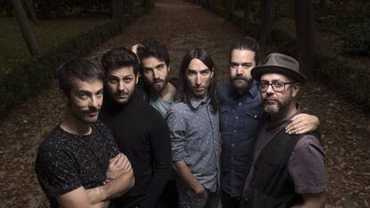 El compromiso de los seis con su propio itinerario artístico les lleva a preferir siempre la reformulación al continuismo. Es fascinante la querencia de la banda por reinterpretarse, quintaesenciada anoche en una nueva lectura de Maldita Dulzura ―clásico ya entre los clásicos―, misteriosa y turbulenta como si proviniera de un encargo de David Lynch. Pero es que incluso La Virgen de la Humanidad, tema de estreno, ha tenido tiempo de mudar una estrofa que ahora Pucho recita en lugar de entonarla. Todas estas circunstancias, sugerentes y meritorias, empalidecen al compararlas con lo que espera a los tres cuartos de hora de espectáculo, quizá el momento más formidable que estos prestidigitadores de la música popular han urdido en sus dos décadas de andadura. Los seis vetustos, unos tipos habituados ya a reventar festivales, estadios, plazas y pabellones, ceden el centro del escenario a las pandereteiras coruñesas de Aliboria y los músicos tradicionales palentinos de El Naán, que se congregan en torno a una vieja mesa de madera para entonar y percutir las Panaderas de Pan Duro, un canto de labor que alguna tatarabuela de nuestros tatarabuelos acertaría a inventar mucho tiempo antes de que nosotros nos hubiésemos asomado al misterio de la vida. Y Vetusta Morla aprovecha esa llamada a la tradición y los ancestros, a cargo de unos músicos habituados a oficiar su arte y ritual ante apenas unos cientos de testigos, para enlazar con su Finisterre, otra de esas páginas que enarbola Juanma Latorre para rivalizar en estado de gracia con el también compositor y guitarrista Guille Galván.