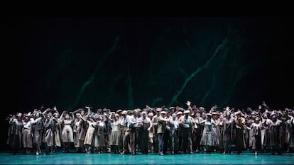 Noche histórica en el Teatro Real. Nabucco vuelve a triunfar, como lo hizo hace 180 años en Milán, cuando Verdi era un joven dispuesto a dejar la composición. En ese éxito resonaba el latido de la ópera romántica, el vigor de un compositor que se veía desahuciado y, sobre todo, el pulso del coro, convertido en el alma de un lamento que condensa la injusticia y el abatimiento del pueblo. Ayer en Madrid, como en Milán en 1842, el coro ¡Va pensiero! fue repetido. En Milán estaba prohibido por las autoridades austriacas de ocupación. Ahora, en Madrid, simplemente no era costumbre. De hecho, es la primera vez que esto ocurre en la moderna historia del Teatro Real. ¡Un bis del coro! Pero, en ambas ocasiones, se ha producido lo inesperado, aquí han sido cinco minutos de aplausos, que habrían sido más si el maestro Luisotti no cede. En el colmo de la rememoración histórica, alguien gritó ¡Viva Verdi!, el grito del Risorgimento italiano para camuflar el ¡Vittorio Emmanuele Re d’Italia!
