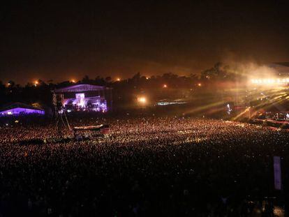 También de Las Vegas, como The Killers, y asimismo con especial talento para componer odas buenrollistas son Imagine Dragons, los otros cabezas de cartel de la noche del jueves. Actuaron en el escenario dos, más pequeño que el principal. Se trata de un recinto donde pueden ver y escuchar en condiciones un concierto unas 20.000 personas (es solo una cifra orientativa). Cuando a las 23 horas de anoche salieron Imagine Dragons sumaban tres veces más. Así que más de la mitad del público vivió la experiencia lastrada. No veía un pimiento y el sonido llegaba a ráfagas.