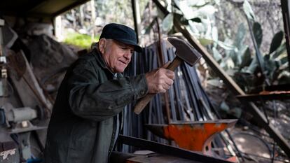 El olor que emana el hierro fundido en la fragua se cuela entre el aire puro que se respira en lo alto del valle del Maipo. Los golpes a punta de martillo con que Gazitúa moldea el material a rojo vivo interrumpen la paz que habita en ese recóndito lugar. Lleva medio siglo en eso. Trabajando 12 horas diarias frente “a seres que no hablan, pero que se transforman en palabra. Aunque esté escrita en toneladas de piedra”, apunta. Para que dialogue, aclara, tiene que haber un otro. “Por eso la escultura tiene que estar en la calle. Cuando uno hace esculturas para los museos o para ser famoso en circuitos y llegar a las bienales, que es un cuento horrible, entonces no estás con la gente”.