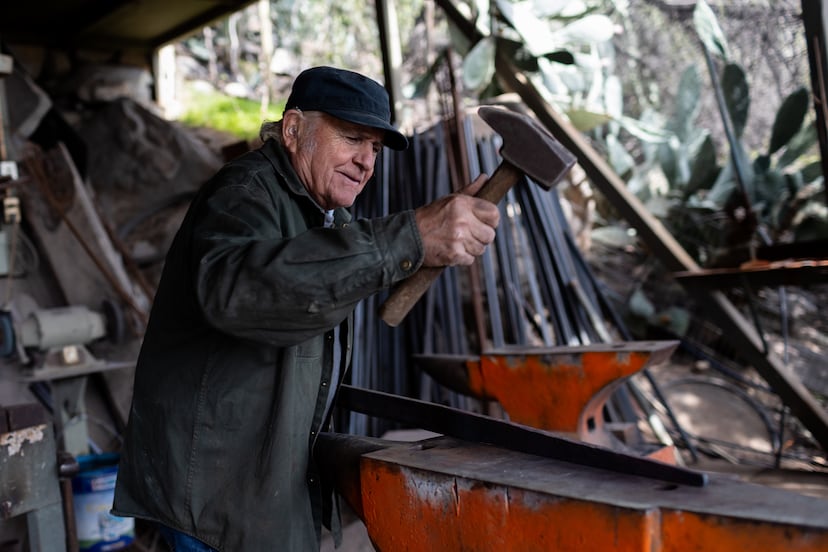El olor que emana el hierro fundido en la fragua se cuela entre el aire puro que se respira en lo alto del valle del Maipo. Los golpes a punta de martillo con que Gazitúa moldea el material a rojo vivo interrumpen la paz que habita en ese recóndito lugar. Lleva medio siglo en eso. Trabajando 12 horas diarias frente “a seres que no hablan, pero que se transforman en palabra. Aunque esté escrita en toneladas de piedra”, apunta. Para que dialogue, aclara, tiene que haber un otro. “Por eso la escultura tiene que estar en la calle. Cuando uno hace esculturas para los museos o para ser famoso en circuitos y llegar a las bienales, que es un cuento horrible, entonces no estás con la gente”.
