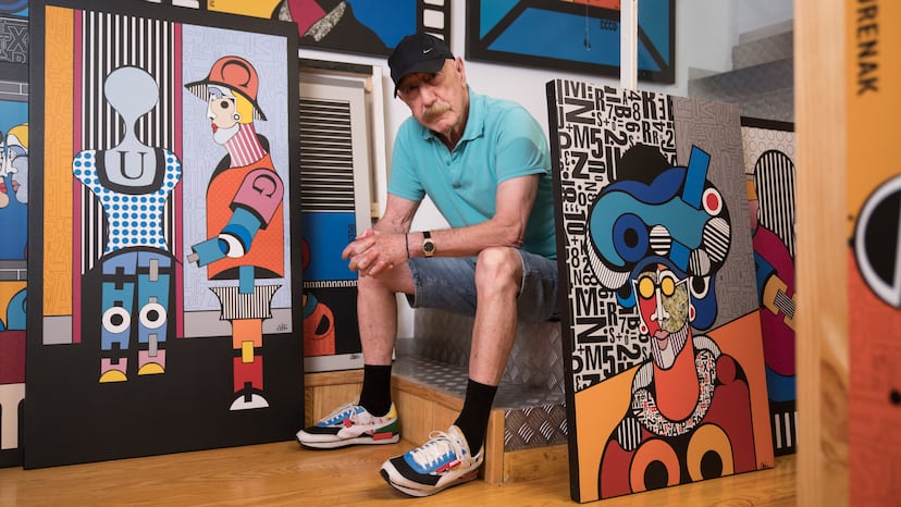 Pa Tou, un labrador entrado en años, recibe zalamero al visitante en la casa-estudio de Oswald Aulestia, un moderno y acogedor loft en el barrio de Gràcia de Barcelona. Aquí está una pequeñísima parte de la obra de este pintor catalán: la suya, la que lleva su firma, la que no ha copiado. Son láminas de reminiscencia pop y vibrantes colores que atrapan la mirada y que Aulestia, a sus 76 años, dibuja en su escritorio y luego compone en el ordenador con ayuda de un informático. El grueso de su obra pictórica, sin embargo, está... en cualquier parte del mundo. Sobre todo, en Estados Unidos: considerado uno de los mayores falsificadores de arte de la historia —por la ingente cantidad de copias que hizo, especialmente de Miró y Tàpies—, Aulestia protagoniza el documental de Filmin El falsificador, que narra la peripecia vital de un hombre sin duda singular, excesivo y canalla. Es difícil decir dónde acaba el hombre y dónde empieza el personaje porque, tal vez, ambos se fusionaron hace ya demasiado tiempo.
