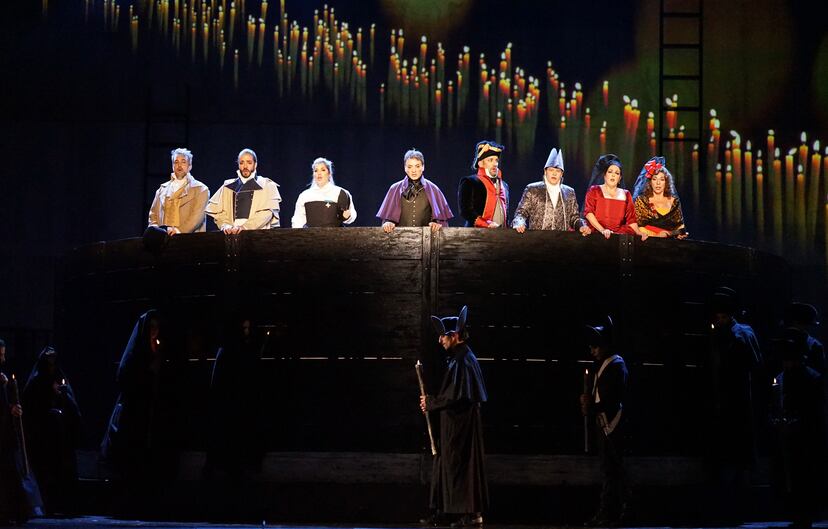 Pan y toros, con un espacio escénico con un escenario giratorio, donde no se desarrolla toda la función, es una curiosa y muy teatral historia de intrigas con Goya como figura central. “El pintor está, por un lado, en el mundo de los reformistas, pero también en el cerrado mundo de la corte borbónica, en el incesante trasiego popular madrileño y en el populista mundo de la tauromaquia, pero siempre desde la contemplación crítica”, explica Juan Echanove, que no se sienta ni un momento durante el ensayo de Pan y toros del pasado viernes. Lo sigue de pie, en el pasillo del patio de butacas, acercándose y alejándose del escenario y, a veces, cogiendo su cámara fotográfica y tomando imágenes. Aplaude y anima con entusiasmo a los cantantes y el coro. “Voy a tener que aprender a dejar Pan y toros cuando acaben las representaciones porque ha ocupado dos años de mi vida, en los que he tenido que poner todo lo que yo sé sobre el arte escénico. Esta experiencia está siendo un acontecimiento importante en mi vida. Es como un sueño. Nunca lo olvidaré. Soy actor y como tal he vivido momentos inolvidables, pero nada como el encargo de Pan y toros”, confiesa el director, quien, tras las representaciones en la Zarzuela, retomará la gira de la obra teatral Ser o no ser e iniciará el rodaje de una nueva serie.