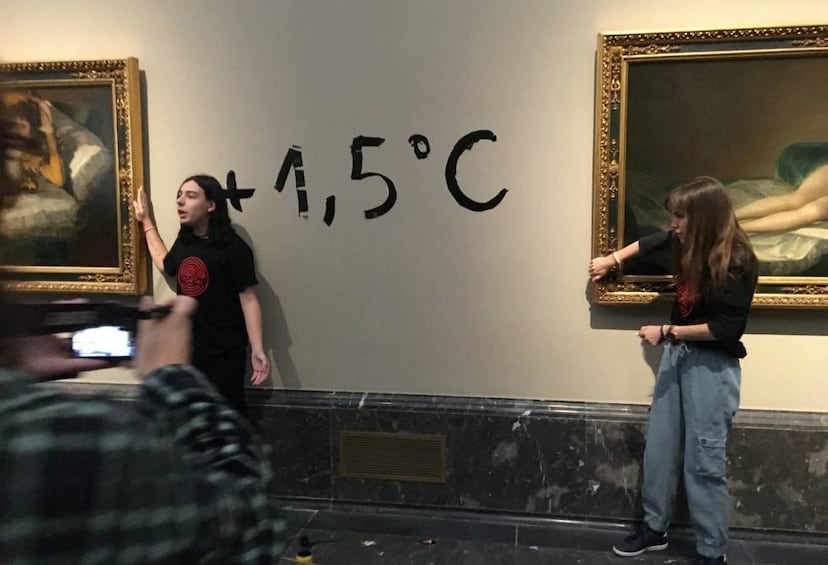 El sábado 5 de noviembre volvió a suceder. Esta vez atacaron contra los dos cuadros que representan Las majas de Goya, en el Museo del Prado. Los agredieron pegándose a sus marcos, parte importante y fundamental del conjunto de la obra artística.