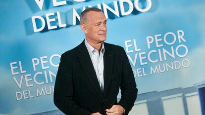 Puede que incluso represente a un tipo de cine en extinción y que, por ello, Hanks, que no suele publicitar mucho sus trabajos, dedicara la mañana de este lunes a promocionar El peor vecino del mundo, adaptación estadounidense de la sueca Un hombre llamado Ove, que en 2016 fue candidata a dos premios Oscar y que se estrena en España el próximo 28 de diciembre. Una comedia amable, menos incisiva que la original, en la que el actor da vida a Otto, un vecino gruñón recién jubilado al que una familia latina recién mudada a su pequeño barrio despertará de su letargo vital. A Madrid Hanks llegó el sábado, y el domingo paseó con su esposa, la actriz y directora Rita Wilson, y su hijo pequeño, Truman (que da vida al personaje de Otto de veinteañero), por el parque del Retiro —solo les reconocieron a la salida del hotel—, y más tarde visitó el Prado. “Hoy toca trabajar”, asegura mientras choca un puño. De americana oscura y camisa blanca, con gafas de pasta transparentes, bromea sobre quién de los dos se va a sentar en una silla con aires de trono dispuesta para la conversación y quién en un sofá marrón más prosaico. Así, entre risas, arranca la charla.