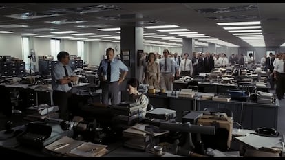 ‘The Paper (Detrás de la noticia)’ (1994). Ron Howard juega con la mística del periodismo, como decía la promoción en su estreno: “En 24 horas, todo puede suceder en The New York Sun”, un diario sensacionalista y destartalado donde solo importan las ventas. Michael Keaton es el editor, y tiene que navegar por el torbellino que vive un día completamente alocado. Por cierto, una imagen para la historia, la de “Parad las máquinas”, mientras con un botón se detienen las rotativas para cambiar el periódico. En tiempos de internet, suena a épocas pretéritas. Disponible en Filmin.