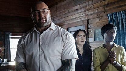 El desconcertante personaje que interpreta Dave Bautista, ese actor y luchador profesional que parece salido de un reality en horario nocturno y sirve Shyamalan para homenajear el mito de Frankenstein, lleva la batuta de un delirio con mística de telediario. Y aunque cada personaje representa diferentes respuestas al mismo problema, finalmente el que más destaca es el de la niña, quizá porque se adapta mejor al esquematismo de Shyamalan. Llaman a la puerta convoca muchos de los fantasmas de nuestra sociedad, como la crisis de la salud mental y la pérdida de la noción de la realidad. Aunque todo parezca un simplón juego de niños, la pregunta a qué estamos dispuestos a renunciar para salvar a la humanidad prevalece más allá de los títulos de crédito.