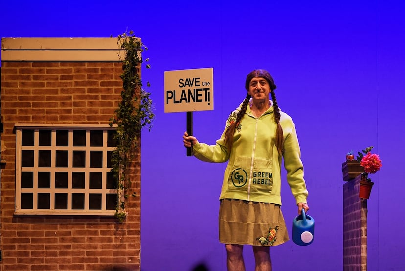 Por la escena van desfilando desde ecologistas torpes con sus enormes contradicciones —alguno no sabe reciclar— hasta malvados empresarios contaminadores. “El empresario está muy exagerado, es gordo, malo, tiene mala leche, no tiene empatía, contamina sin importarle... Por eso el público se suele poner de parte de los ecologistas y grita consignas a favor de ellos”, explica al teléfono Fidel Fernández (Madrid, 57 años), el actor que precisamente da vida a este personaje, que según él, “está inspirado en una mezcla entre Jesús Gil, Donald Trump y Jair Bolsonaro”.